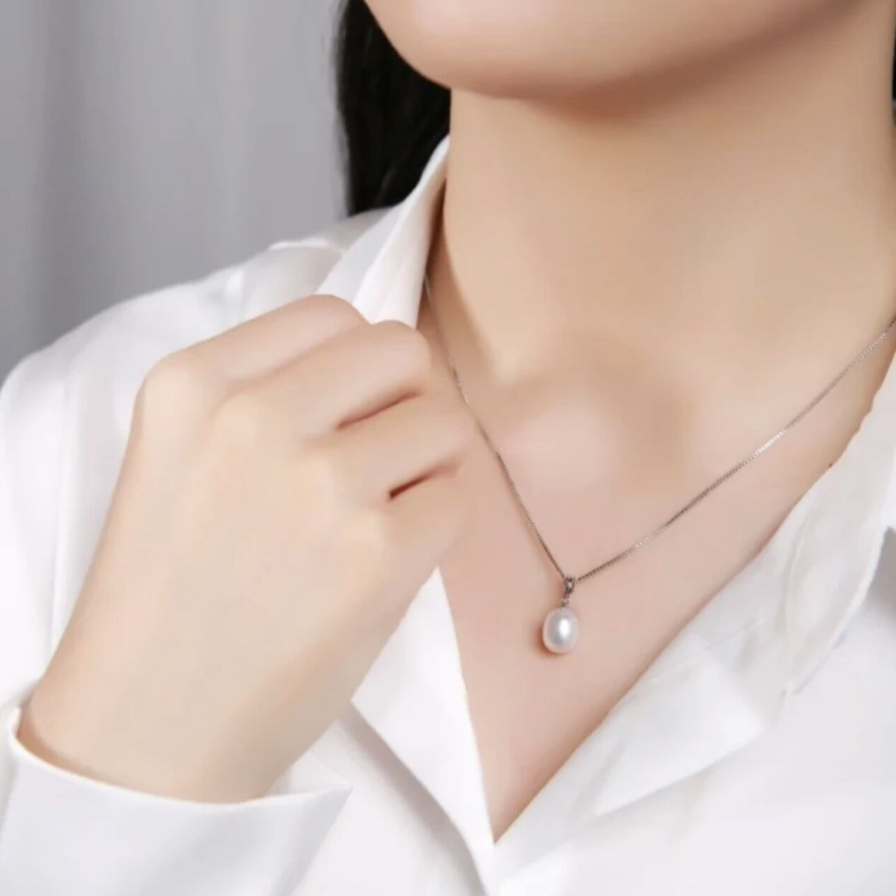 天然淡水珍珠单颗吊坠项链女简约百搭锁骨链s925项坠气质颈链水滴