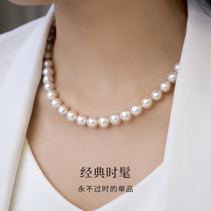 天然淡水无核珍珠项链近圆强光全珠链气质颈链送妈妈婆婆节日礼物