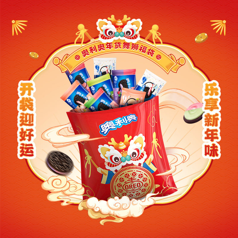 奥利奥夹心饼干舞狮福袋大礼包485g5种口味共计25小包饼干