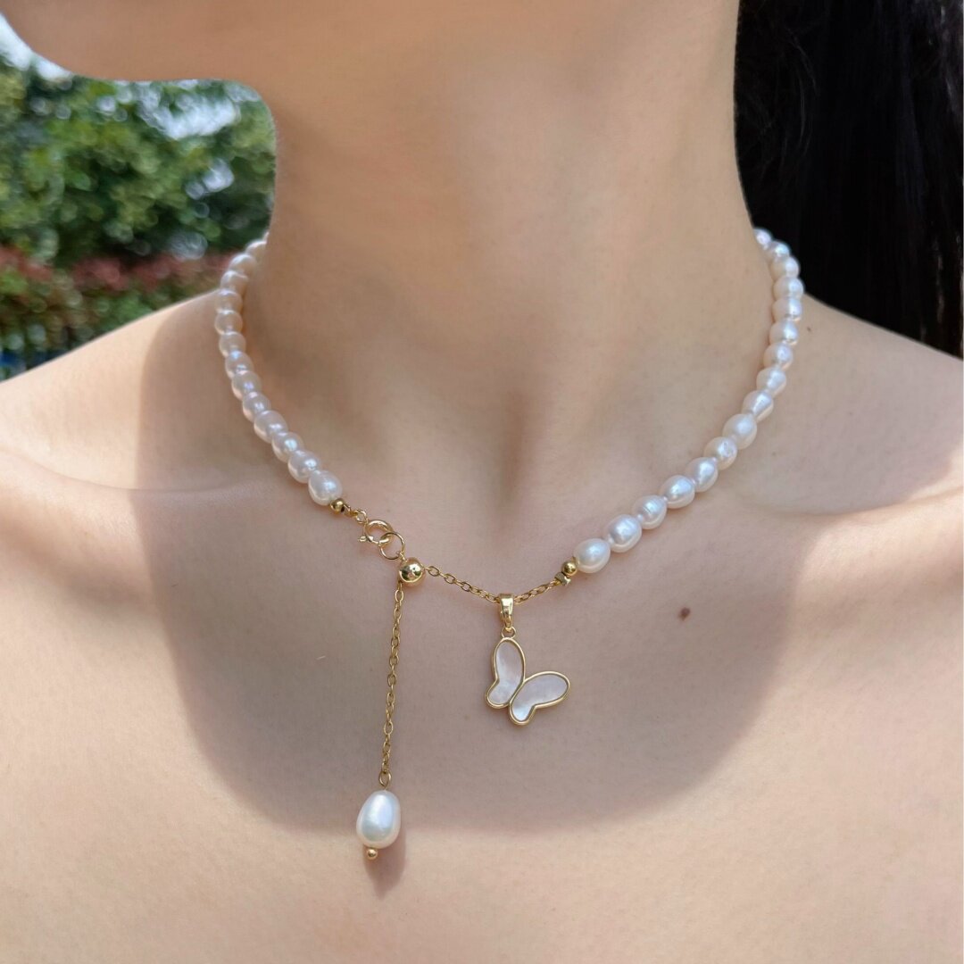 天然淡水珍珠项链女轻奢小众颈链气质锁骨链高级感蝴蝶吊坠送女友