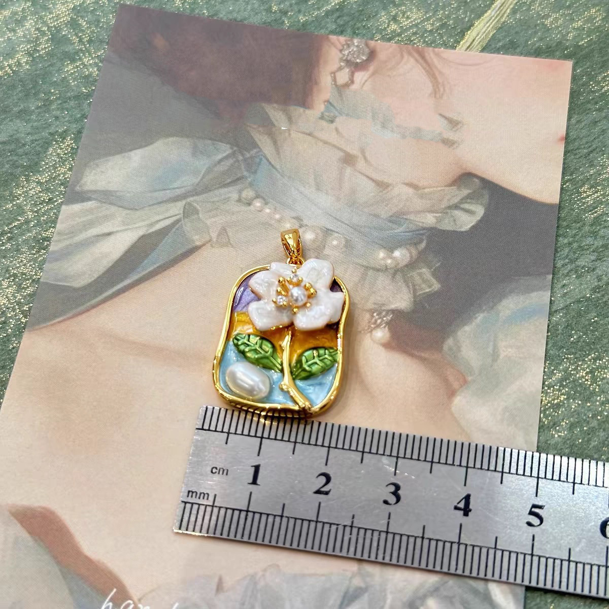 天然淡水珍珠项链万能扣茉莉花吊坠时尚镶嵌油画宫廷风坠链挂件