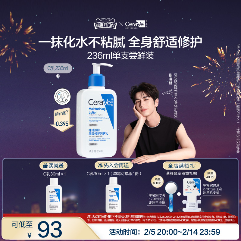 【张凌赫同款】CeraVe适乐肤C乳保湿修护乳身体乳神经酰胺乳液