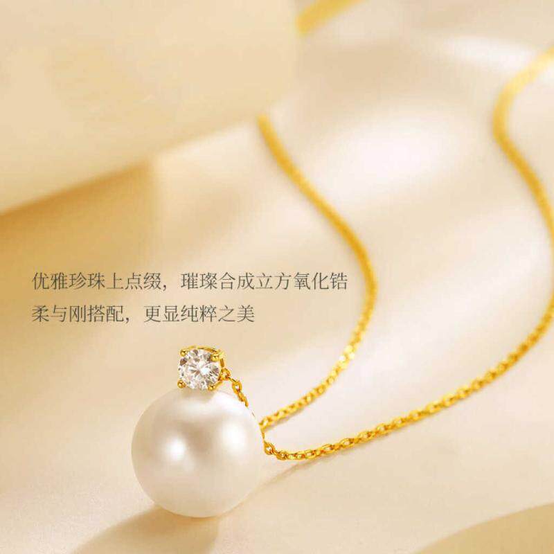 天然淡水珍珠18K金戴妃大白吊坠强光正圆气质项链百搭时尚锁骨链