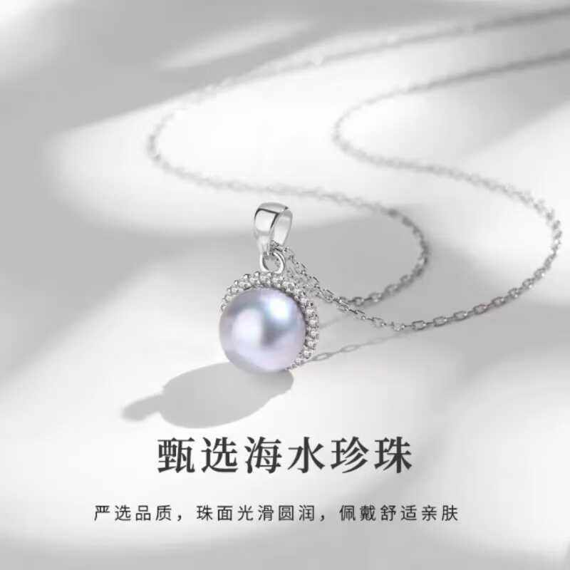 天然海水珍珠真多麻S925银太阳花吊坠高级感锁骨链时尚气质女颈链