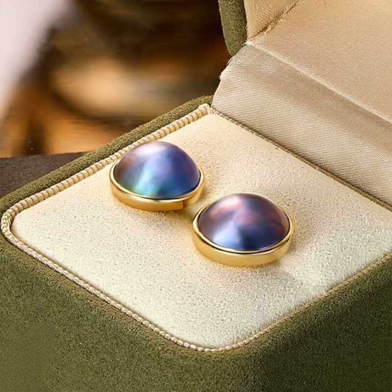 天然海水蓝马贝珍珠耳钉气质女百搭耳饰高级感小众耳坠情人节礼物