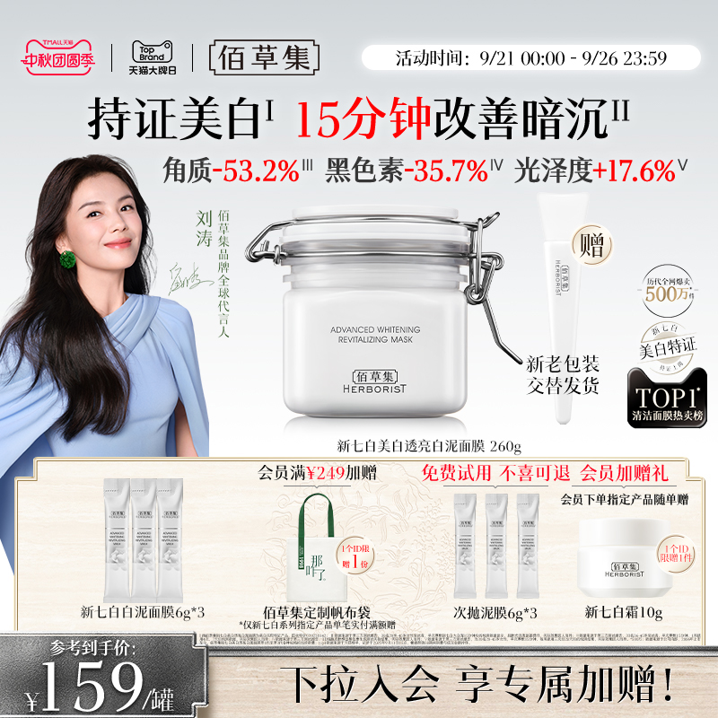 【3.0版】佰草集新七白大白泥美白特证祛斑去黄涂抹面膜清洁泥膜