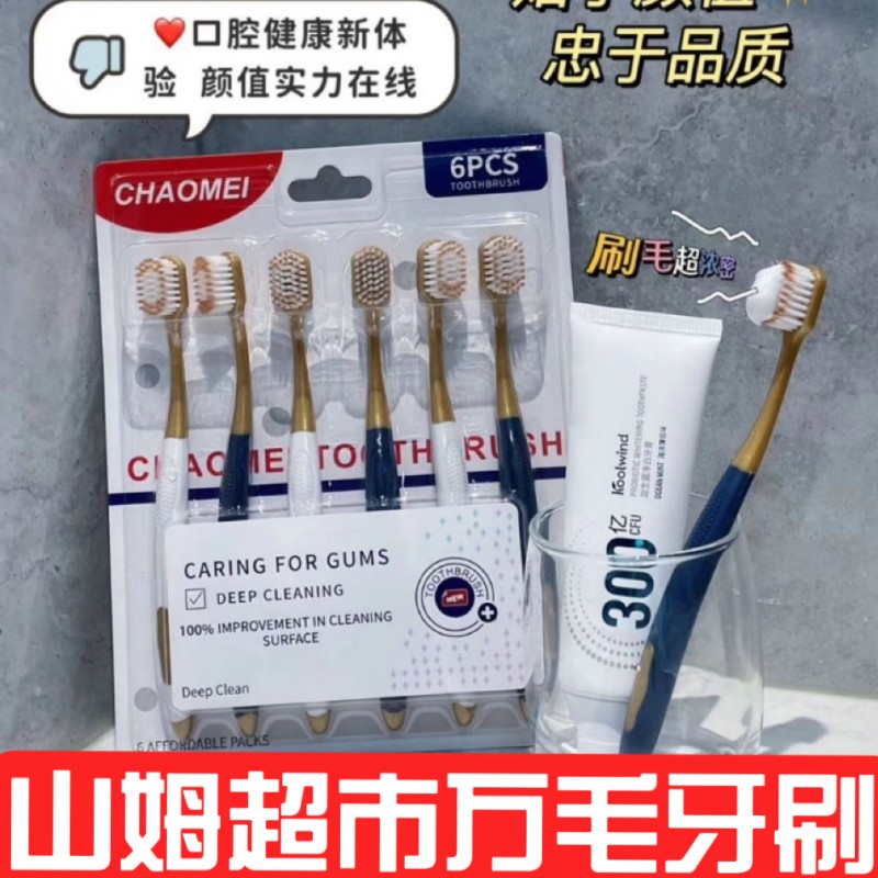 牙刷6支成人软毛宽头深层清洁口腔密丝柔软高密家用折叠护龈抗菌