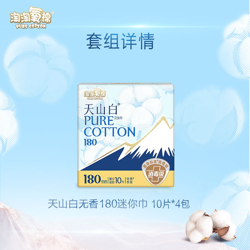 【下拉详情更优惠】淘淘氧棉天山白消毒级纯棉卫生巾日夜组合迷你
