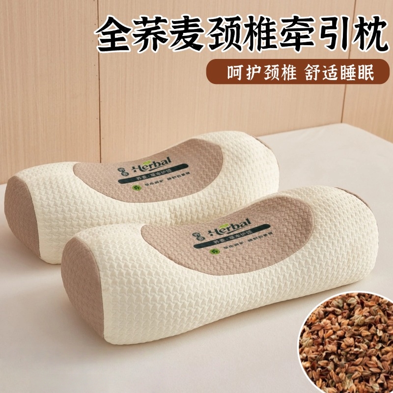 枕头颈椎专用全荞麦壳皮护颈枕芯双人反弓牵引圆柱枕男硬脖枕曲度