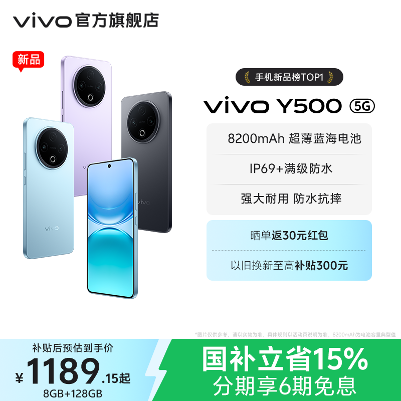 【官方正品】vivo Y500 新品手机官方旗舰店官网正品8200mAh超薄大电池耐用防水抗摔国家补贴