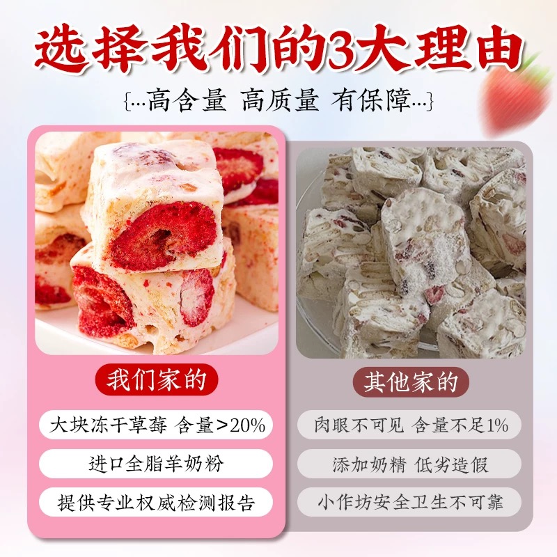 草莓羊奶芙旗舰店正品雪花酥独立包装拉丝长条蓝莓网红糕点零食