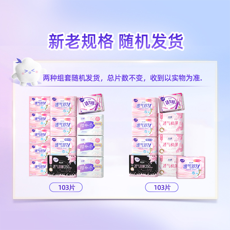 【下拉详情领补贴价】洁婷樱花透气双U日夜组合姨妈巾卫生巾