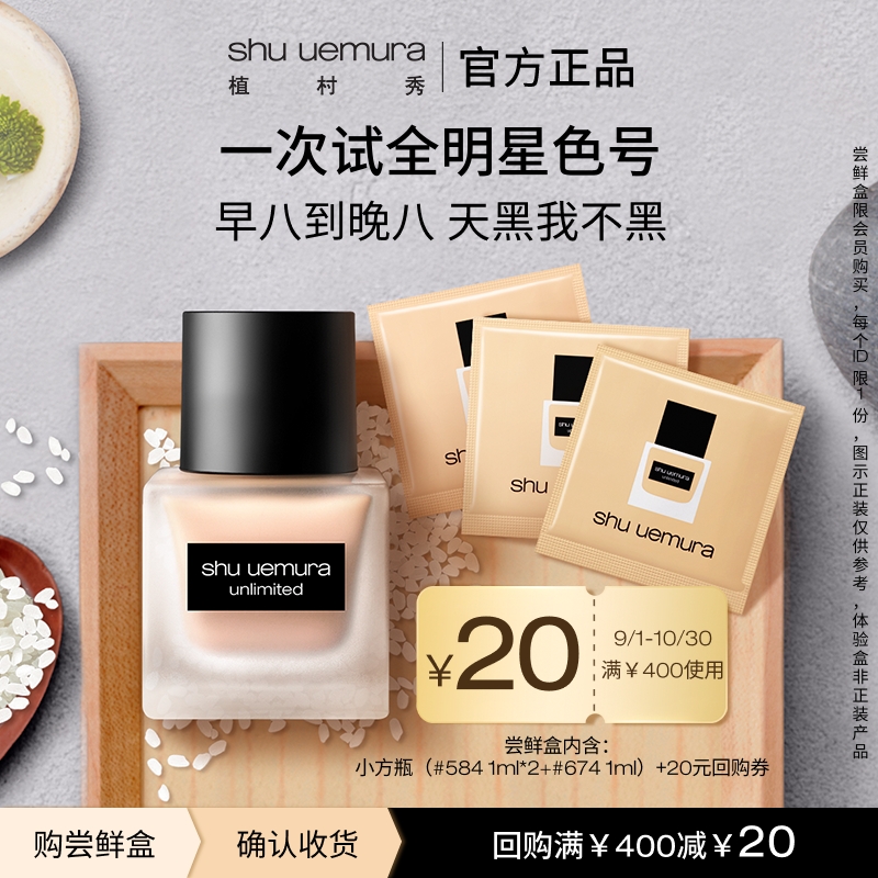 【赠大额回购券】植村秀小方瓶粉底液小样持久混油皮抗氧旅游体验