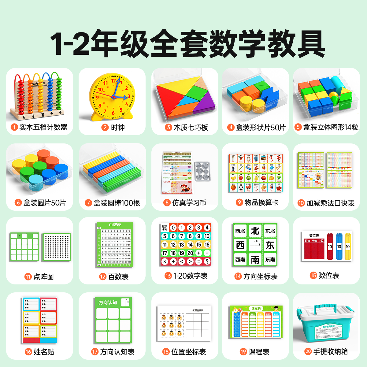 一年级数学教具全套小学人教版钟表数数棒立体几何图形算数计数器