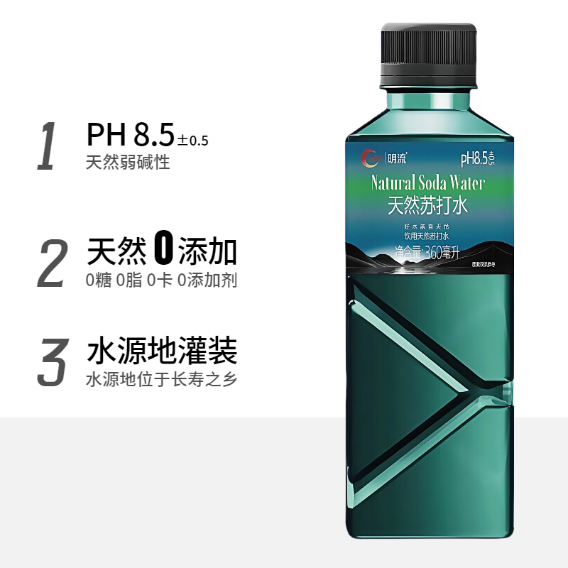 天然苏打水整箱12瓶 明流弱碱性饮用水360ml