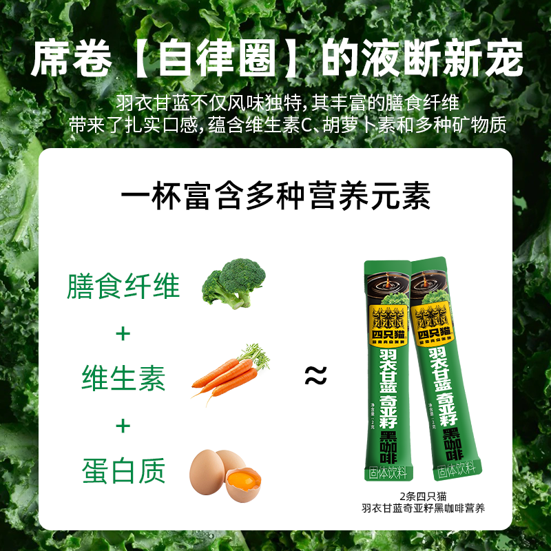 四只猫 美式黑咖啡 羽衣甘蓝无蔗糖速溶小粒咖啡 提神燃 官方正品
