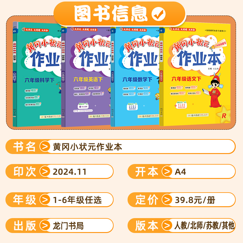 2025秋黄冈小状元作业本小学一二三四五六年级上下册语文数学英语人教版北师科学教科版课堂学霸笔记同步专项训练练习册必刷题黄岗