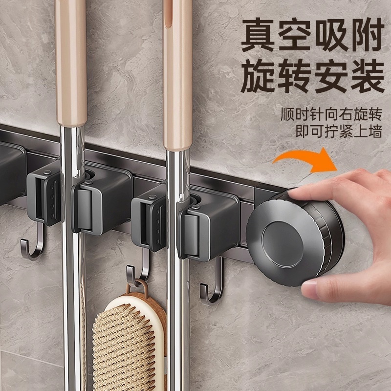 吸盘拖把壁挂夹扫把拖把架抹布挂钩免打孔卫生间浴室门后收纳架子