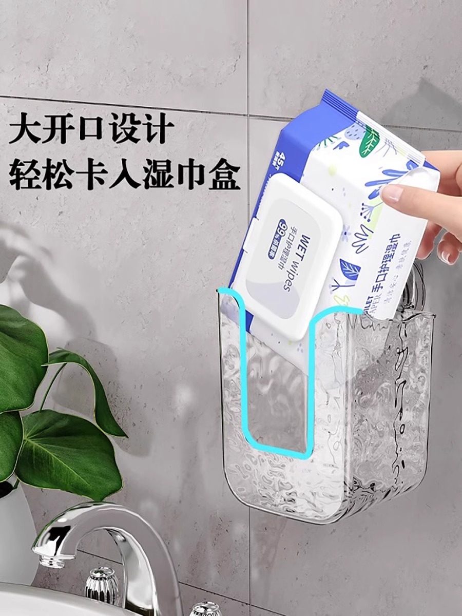 吸盘湿纸巾收纳盒免打孔卫生间壁挂厕所纸巾盒抽纸盒湿巾盒轻奢