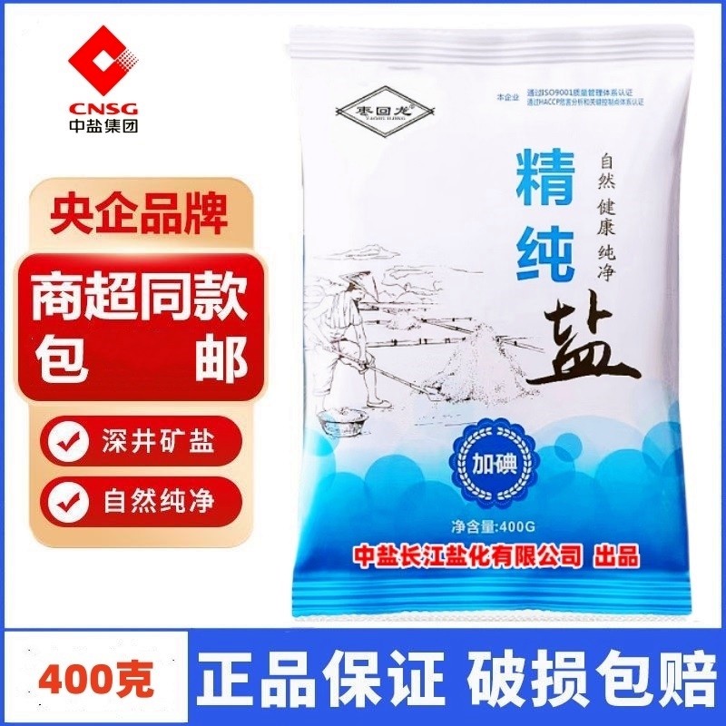中盐枣回龙精纯盐食用盐精制盐细盐巴加碘家用食盐调味品央企正品