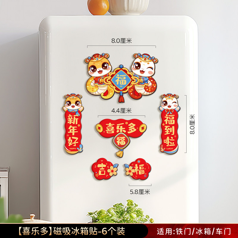 新年冰箱贴磁贴2025蛇年冰箱磁吸对联吸铁石春联过年春节装饰
