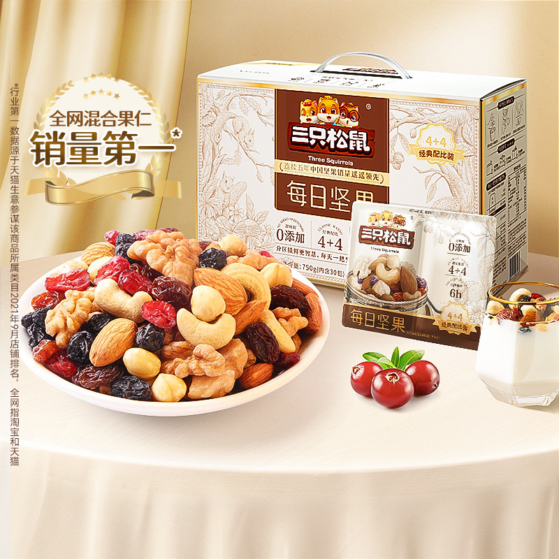三只松鼠_每日坚果750g/30包健康混合干果果仁零食送礼礼盒