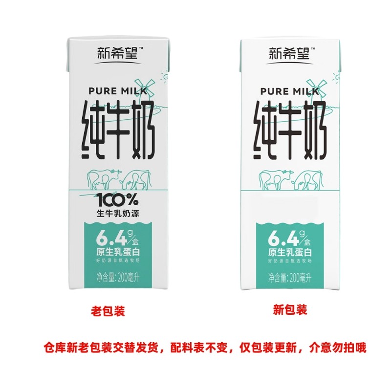 新希望白帝纯牛奶200ml*12盒/1箱含营养早餐奶鲜奶生牛乳健康新鲜