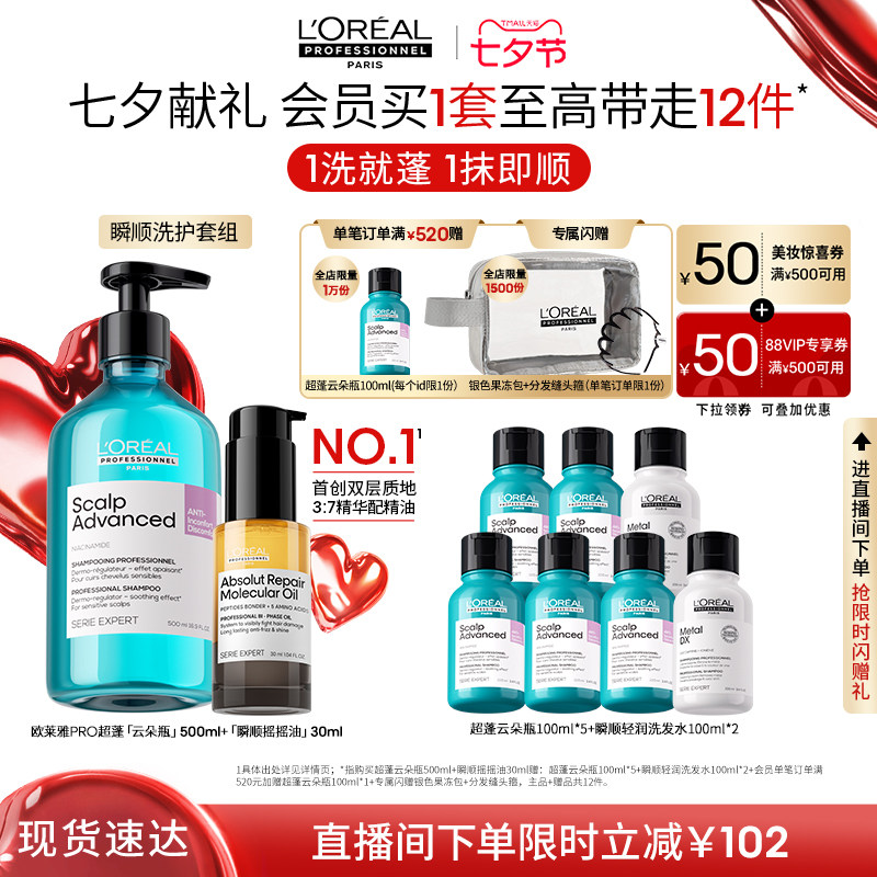 【立减12%】欧莱雅PRO瞬顺摇摇油发膜云朵瓶洗发水精华柔顺控油