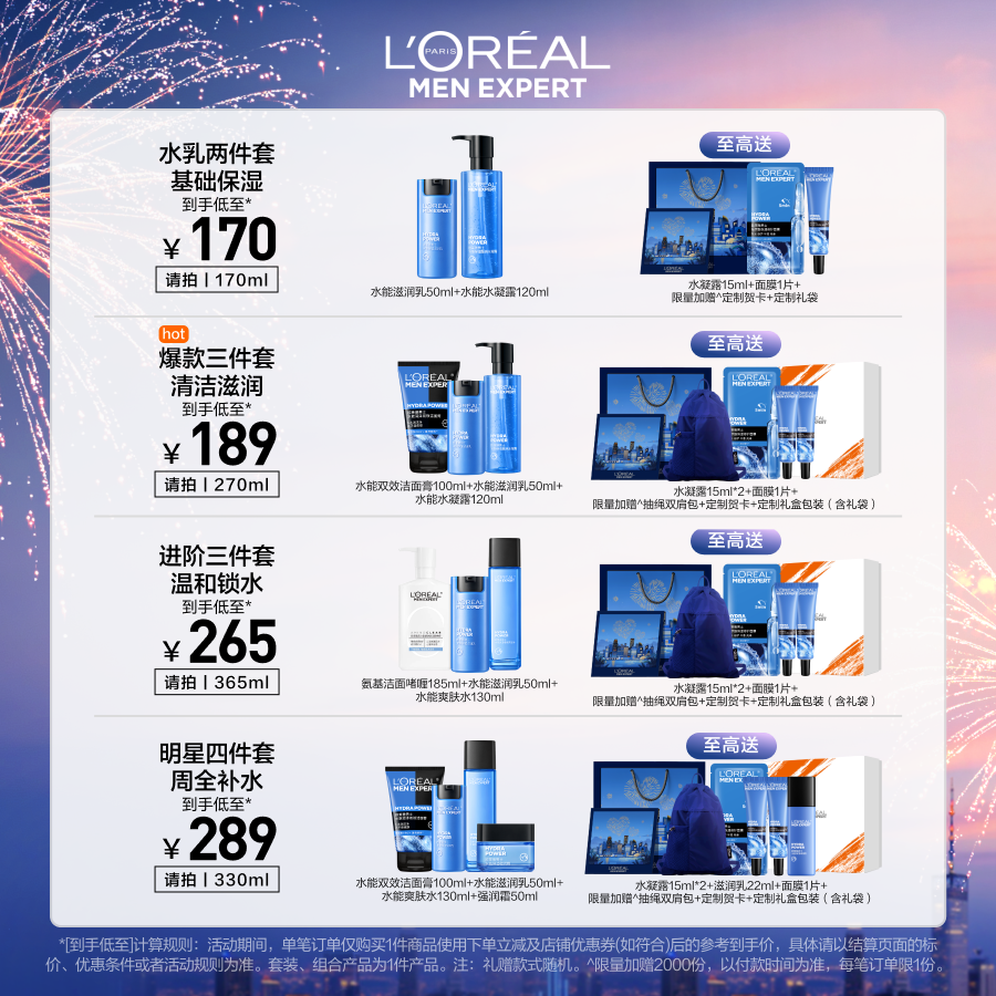 【七夕礼物送男友】欧莱雅男士补水保湿套装洗面奶水乳护肤品男生