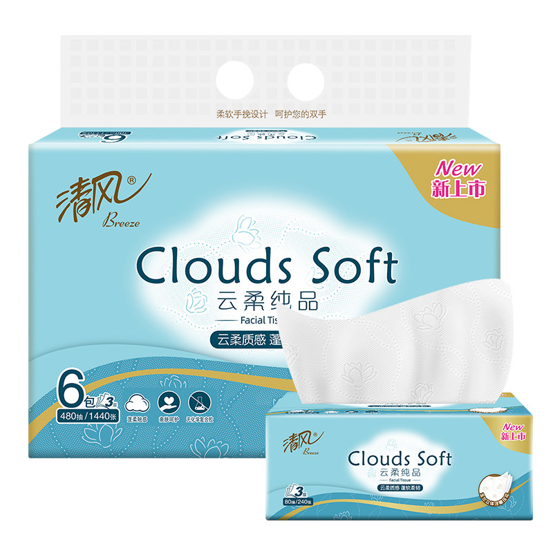 【李昀锐同款】清风压花抽纸云柔3层/棉柔卡皮巴拉4层卫生纸餐巾