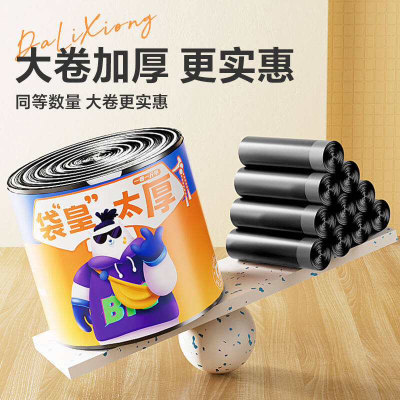 大力熊袋皇太厚家用垃圾袋黑色加厚抽绳家庭清洁办公塑料袋150只