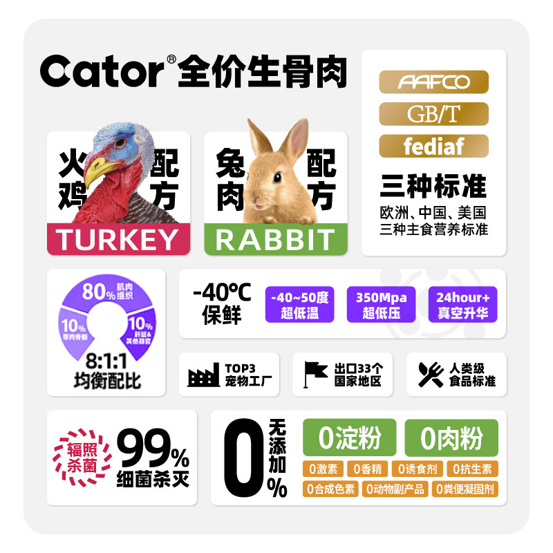 Cator喵彩全价冻干生骨肉兔肉火鸡成幼猫猫咪主食猫粮105g