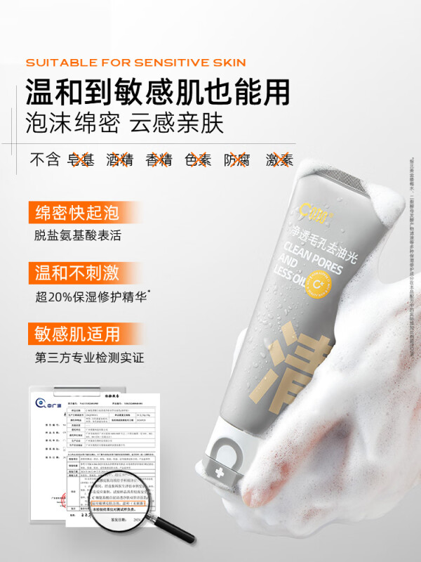 C咖氨基酸双管洗面奶控油男女清洁毛孔去角质卸妆二合一洁面乳