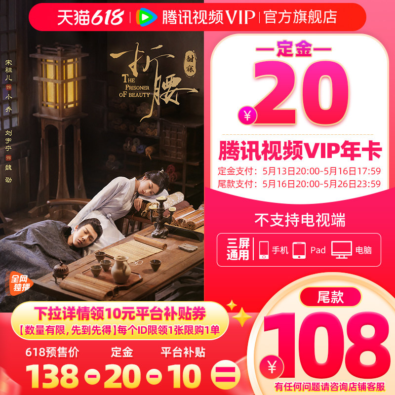 【限时补贴到手128元】腾讯视频VIP会员12个月1年卡腾讯会员折腰