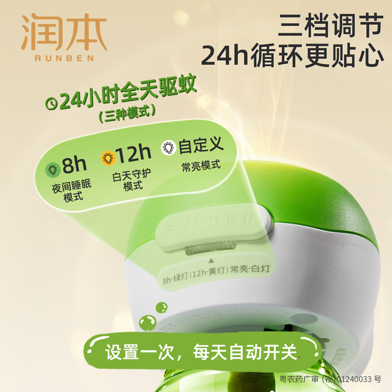 润本电热蚊香液无味室内插电式智能定时驱蚊水宝宝婴幼儿童止痒棒