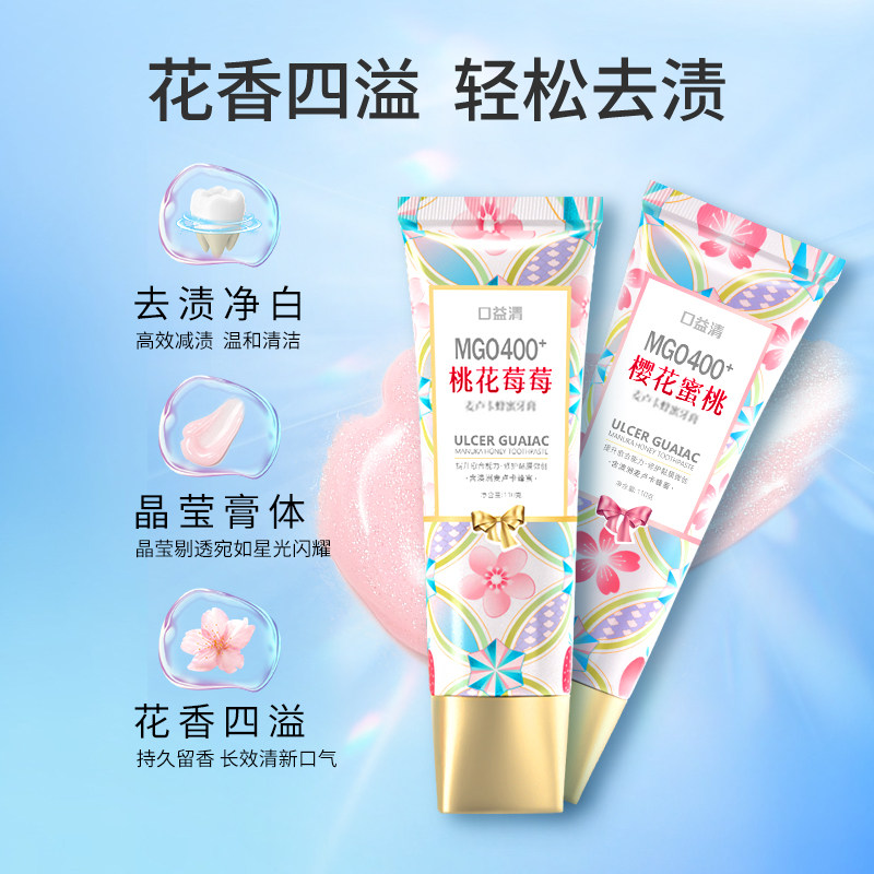 口益清牙膏美白去黄去渍花香成人专用女清新口气呵护口腔官方正品