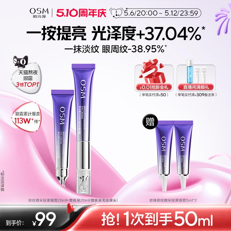 【母亲节礼物】欧诗漫御纹电动按摩眼霜保湿提拉紧致抗皱淡纹眼霜
