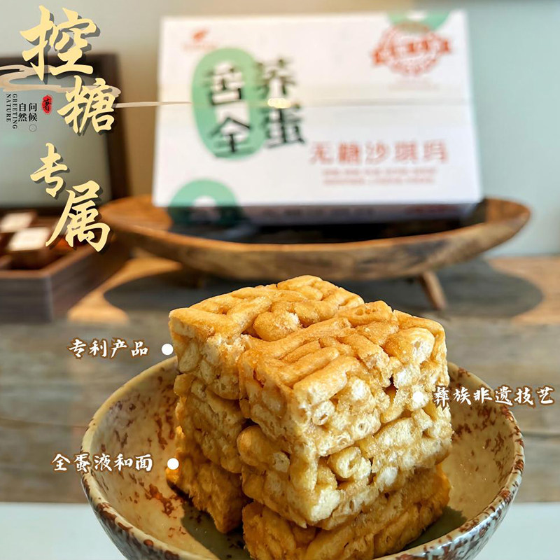 问候自然荞麦无糖沙琪玛松软糯糕点苦荞食品糖人糖友零食720g整箱