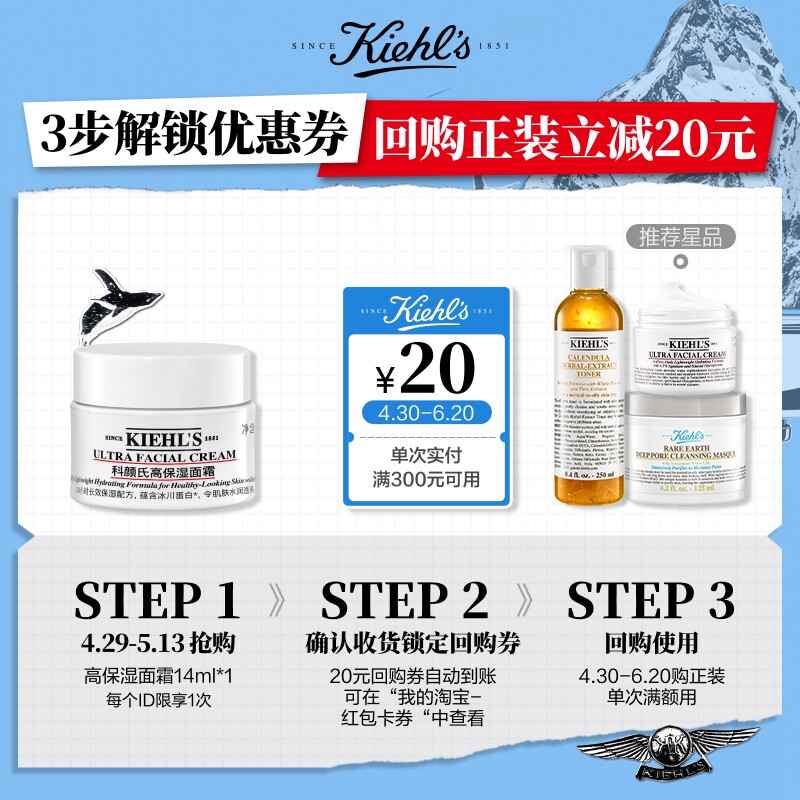 【达人直播间】科颜氏高保湿面霜保湿修护补水乳液回购返20元券O
