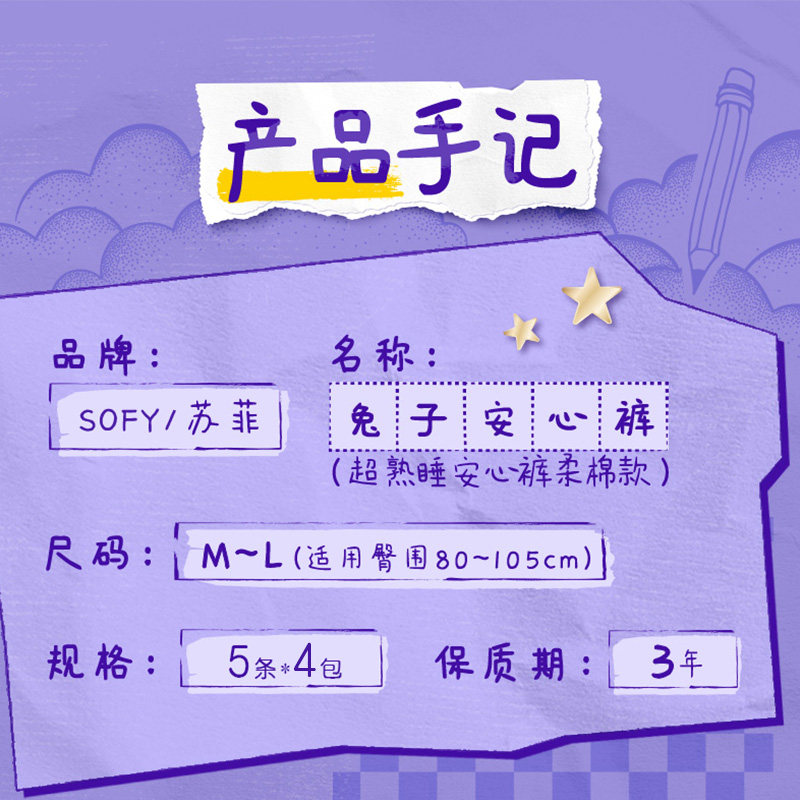 苏菲卫生巾超熟睡兔子安心裤姨妈巾M~L码5片*4包