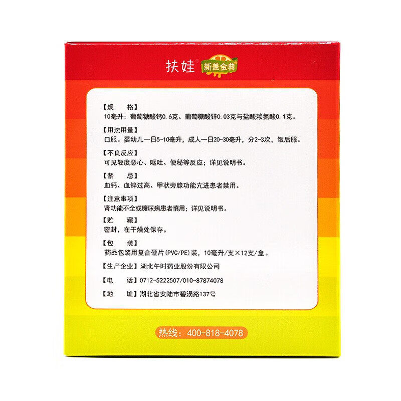 扶娃 葡萄糖酸钙锌口服液 葡萄糖酸锌口溶液MT儿童补锌钙