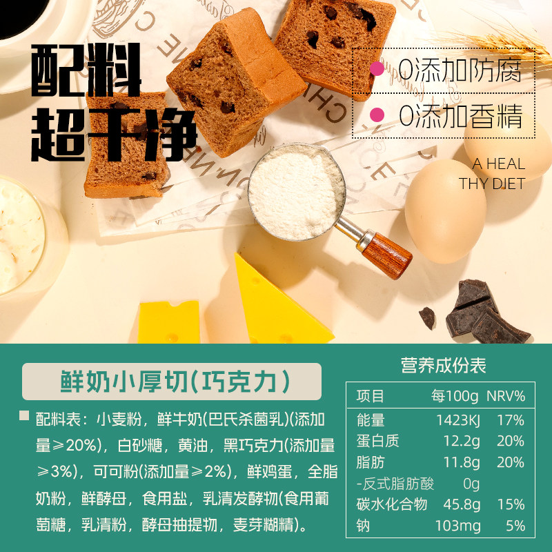 【士丹顿】纯可可脂巧克力厚切吐司学生营养健康早餐代餐懒人糕点