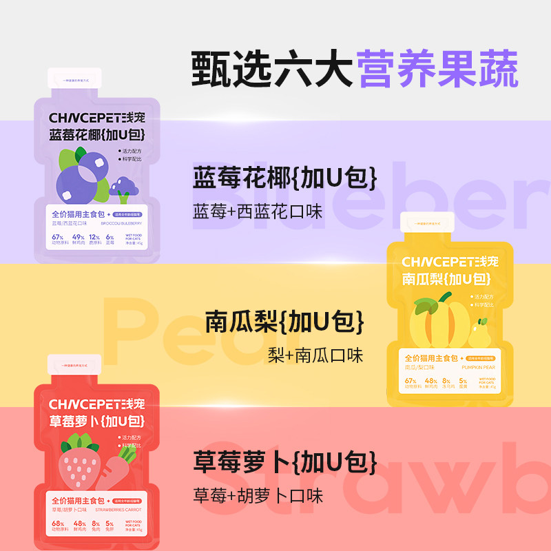 浅宠全价主食餐包罐头果蔬搭配三种口味混合营养补水成幼猫通用