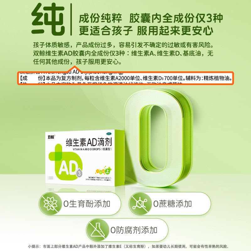 双鲸维生素ad滴剂50粒1岁以上婴幼儿童补钙药悦而维ad剂非鱼肝油