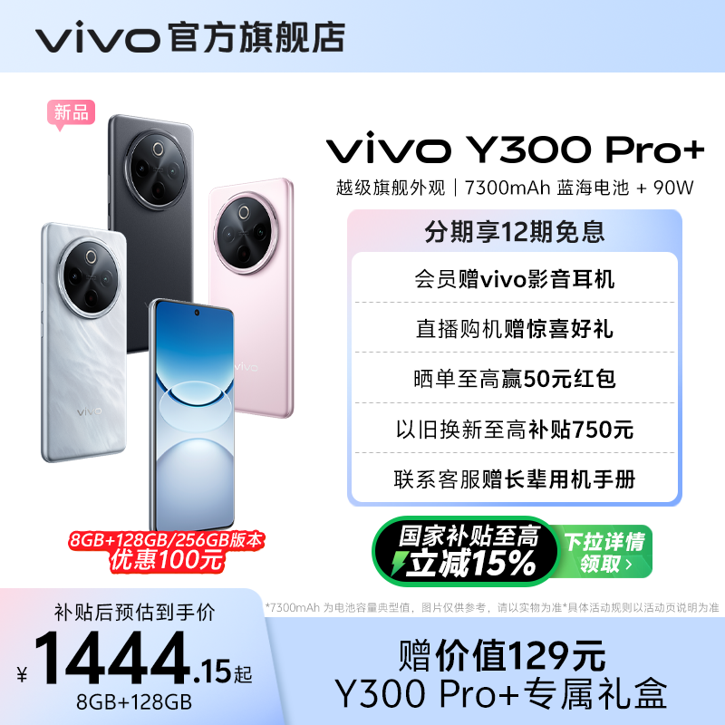 【国家补贴至高立省15%】vivo Y300 Pro+新品7300mAh大电池90W闪充大内存拍照学生手机官网正品