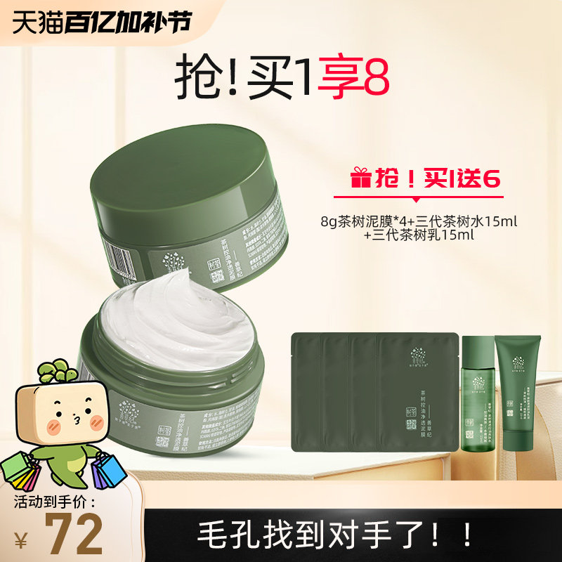 善草纪茶树控油泥膜去黑头白头清洁毛孔清洁面膜