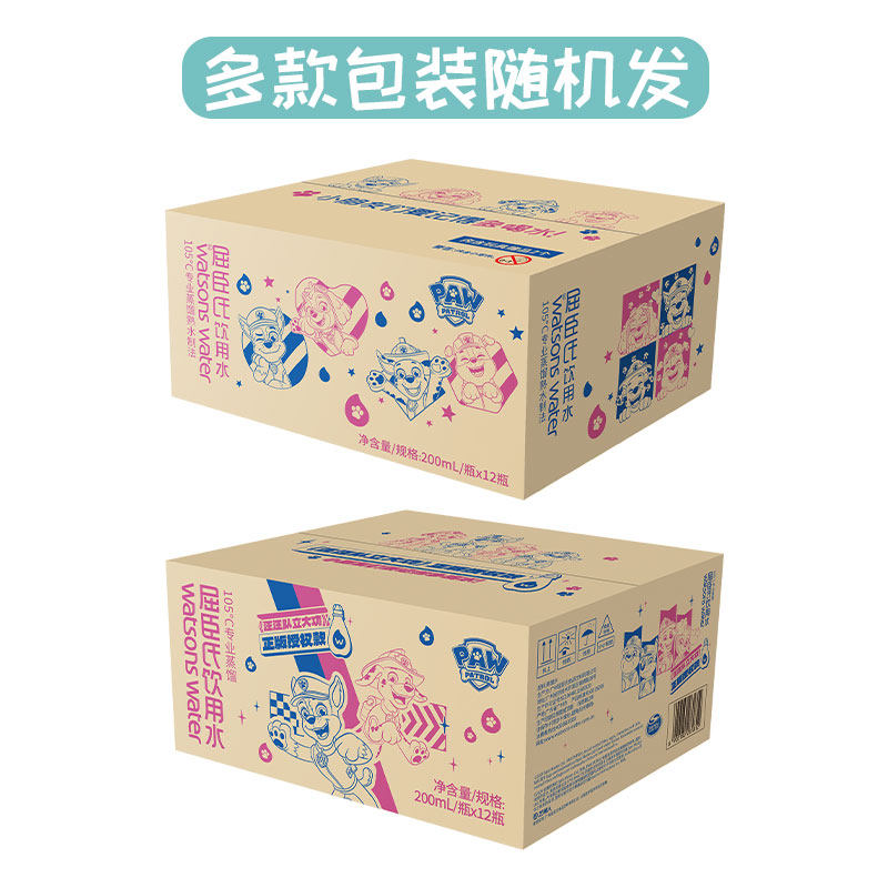 屈臣氏饮用水汪汪队200ml*12瓶非矿泉高温蒸馏水整箱便携