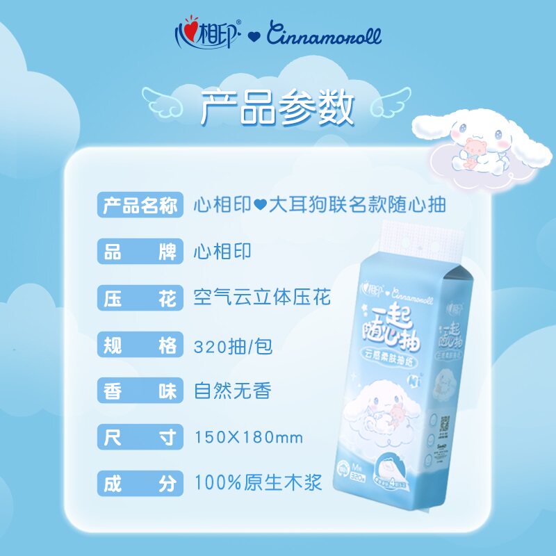 心相印云感三丽鸥IP悬挂抽纸M码4层320抽4提