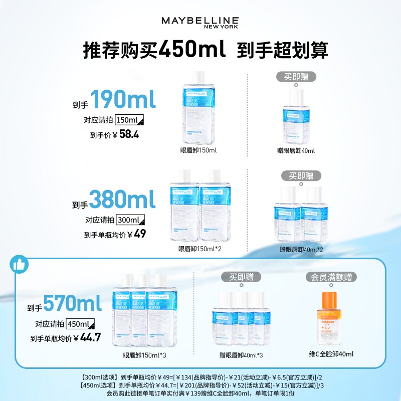 美宝莲眼唇卸妆液敏感肌眼部卸妆水卸妆油全脸可卸温和水油三合一