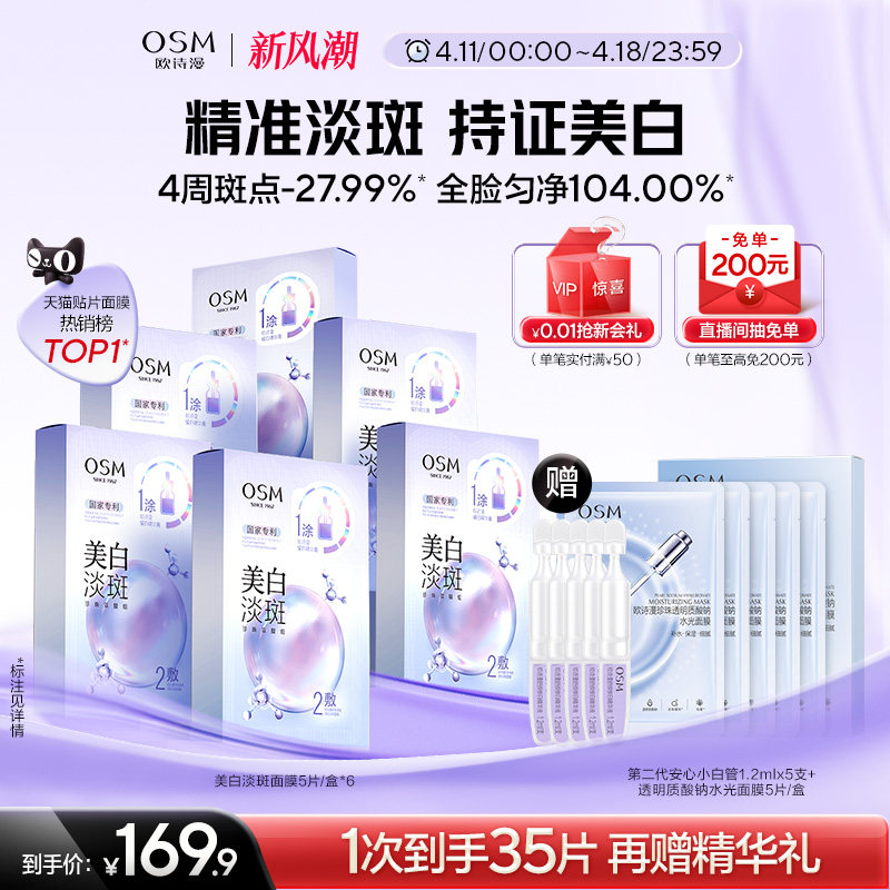 欧诗漫珍珠美白淡斑面膜补水保湿烟酰胺提亮熬夜去黄暗沉贴片面膜